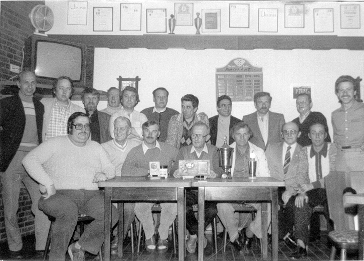 von Links stehend: Jecki Saroglou, Dieter Peters, ????, Egon Baumann, Günter Hagenacker, Günter Grabutznat, Wolfgang Flammersfeld, Bruno Kasper, Gerd Slowik, Edmund Ott, Günter Melezak Sitzend: Charlie Nelz, Fritz Vogt, Willi Kersges, Karl Finger, Kurt Nübel sen. |