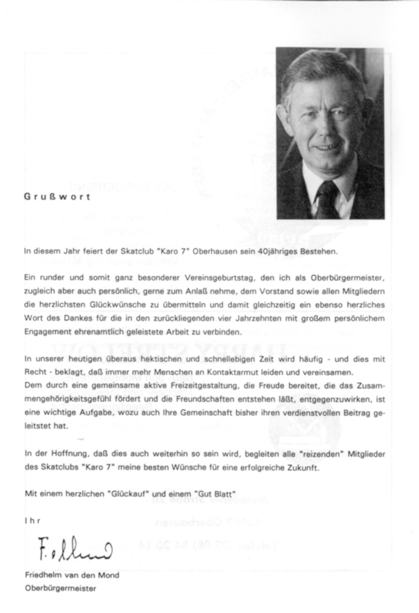 Grußwort des Oberbürgermeisters im Jubiläumsheft 1996